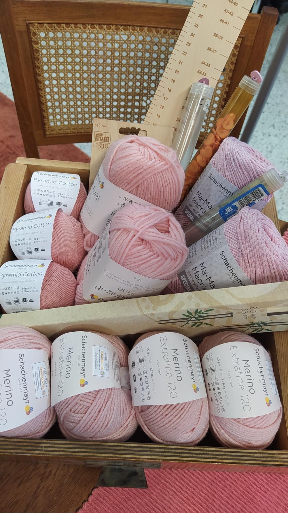 Lisäksi meillä on myynnissä runsas valikoima ompelutarvikkeita, ja käytämmekin mahdollisuuksien mukaan myymälän valikoimasta löytyviä tuotteita.